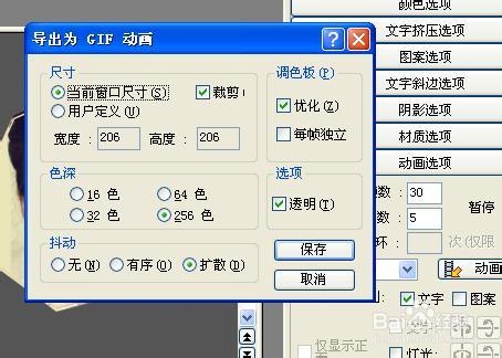 10、動(dòng)畫選項(xiàng)—每個(gè)循環(huán)的幀數(shù)改成30,每秒幀數(shù)改成5,旋轉(zhuǎn)方式隨意。導(dǎo)出為動(dòng)畫以gif文件保存。