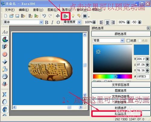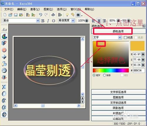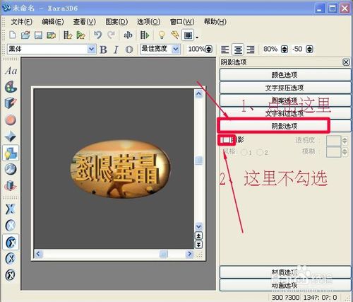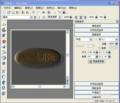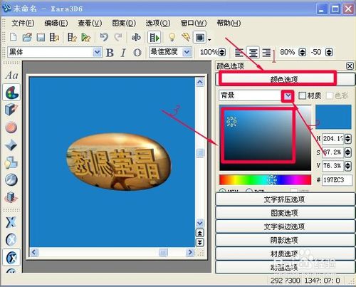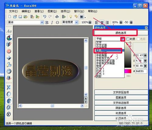 用戶在進(jìn)行文字的添加的時(shí)候,可以在這里進(jìn)行顏色選項(xiàng)、文字?jǐn)D壓選項(xiàng)以及材質(zhì)選項(xiàng)等多種屬性的設(shè)置。