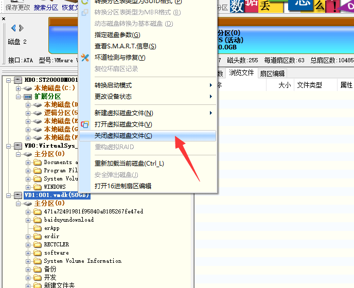 第三步,在DiskGenius中關閉虛擬硬盤