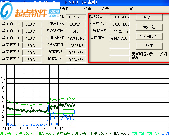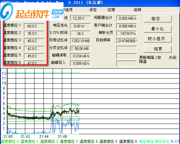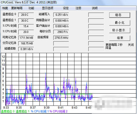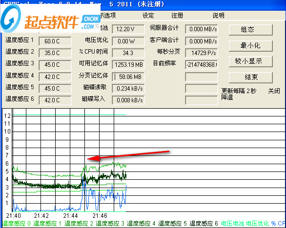 4、CPU溫度變化統(tǒng)計圖,您可以在這里清楚的了解系統(tǒng)溫度變化
