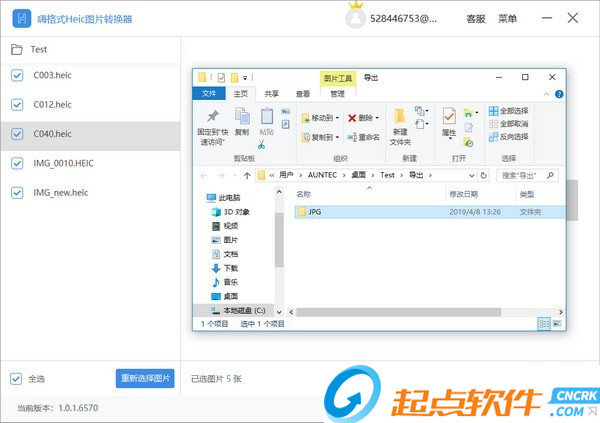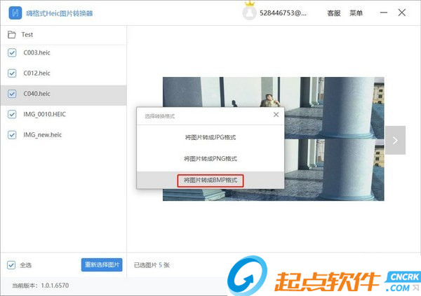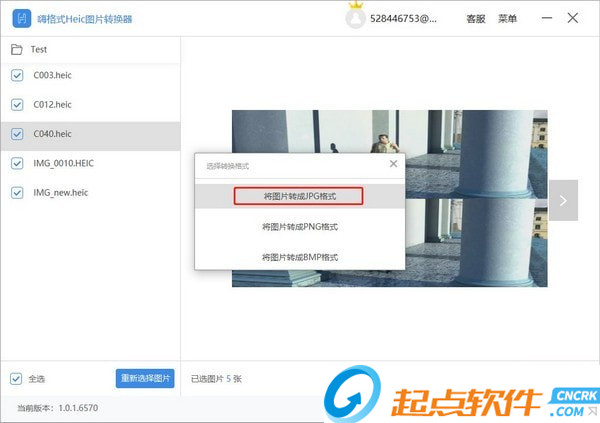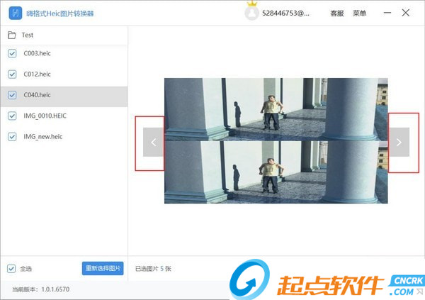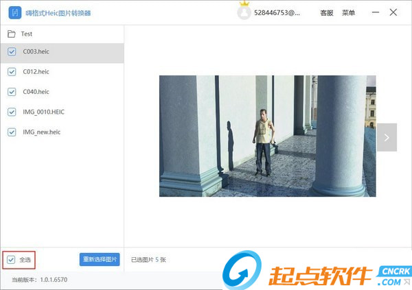 如果添加了錯誤的Heic圖片,可以點擊【重新選擇圖片】按鈕,重新導入新的圖片。