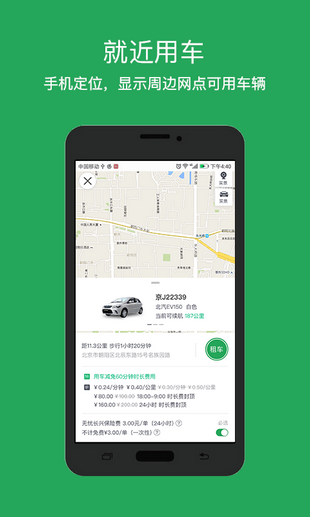 通過地圖進行簡單的找車服務(wù)、找到你身邊的空閑車輛!
