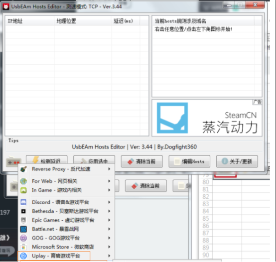 第二步:點(diǎn)擊uplay加速器永久免費(fèi)版左下角的圖標(biāo),選擇【Uplay-育碧游戲平臺(tái)】進(jìn)行游戲下載;