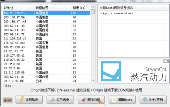 第六步:待游戲在下完畢,點(diǎn)擊【清除當(dāng)前】清除hosts即可!