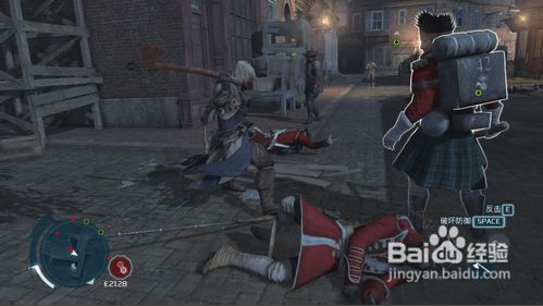 反擊:游戲中遇到軍官級別或者胖子等特殊類型兵種就不好對付了,你按了E鍵防守也經(jīng)常被胖子扇一巴掌。所以我們在攻擊或者防御時可以配合按下空格鍵,空格鍵是干啥的呢?刺客信條3中是破除對方防御的,這樣可以破除軍官或者胖子的防御然后再擊殺,就不會老是被欺負了。