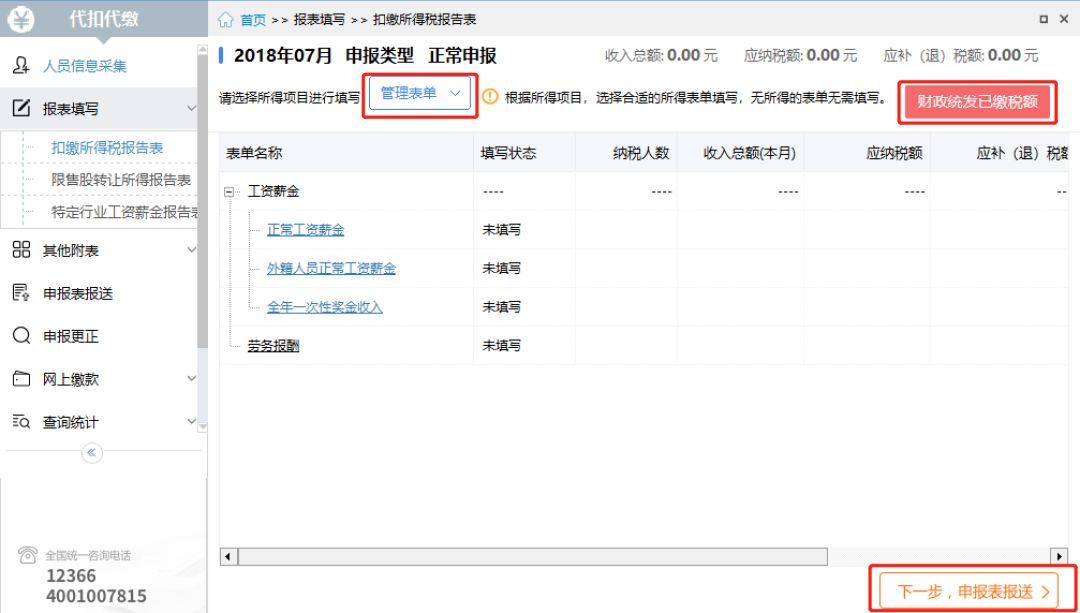 報表填寫功能,是扣繳客戶端的核心功能模塊,是四大主體流程之一。人員信息采集完成之后,就需要為納稅人填寫申報數(shù)據(jù)了。
