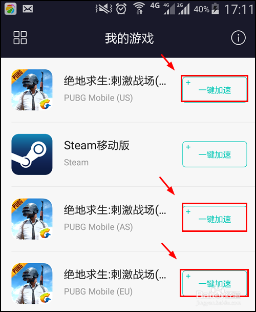 正確的方法是在加速器里,點擊按鈕,如圖所示