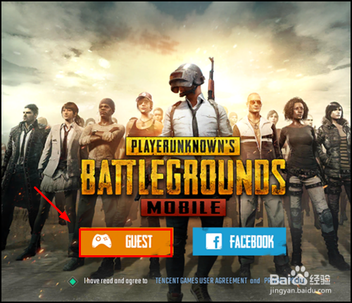 PUBG MOBILE打開后,熟悉的界面出現(xiàn)了,先用游客身份登錄,如圖所示