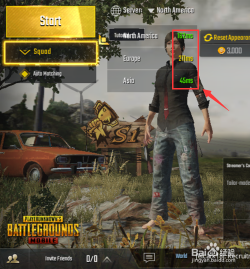 在右邊可以看到延時時間,距離越遠(yuǎn)延遲越高,延遲越高越卡,延遲最高是的北美服務(wù)器,最低的是亞服,如圖所示