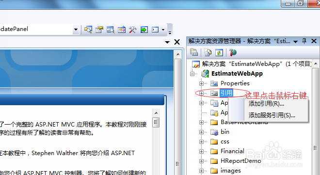 鼠標右鍵點擊“引用”出現(xiàn)“添加引用”的選項,點擊“添加引用”,彈出新的對話框,如下圖。
