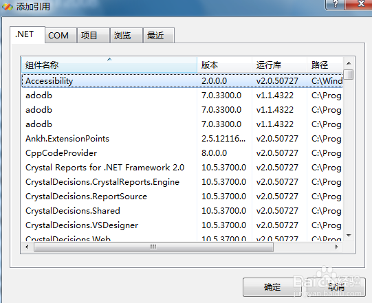 第一個選項“.NET”是列出可供引用的所有 .NET Framework 組件。