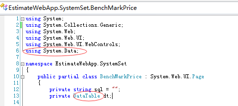 按照以上的說明,我們就可以根據(jù)自己的需要添加相應的引用?,F(xiàn)在我將用實際的例子來說明具體的操作步驟。比如你在代碼中要用到DataTable,在用之前你必須先添加using System.Data;如果沒有增加引用,這個語句就會報錯。編譯無法正常通過。