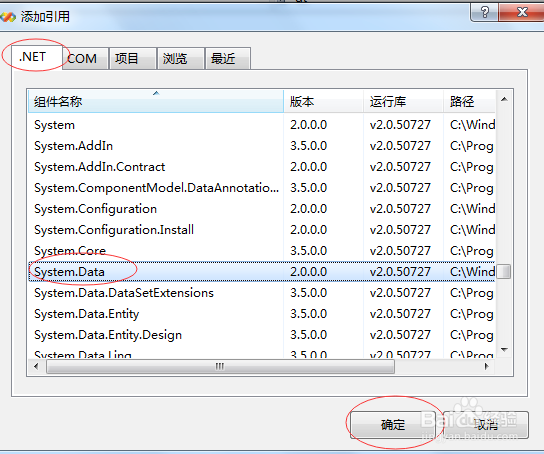 這時候在解決方案那邊右鍵點擊“引用”,彈出引用對話框,在.NET選項下面找到 System.Data,這個是按拼音進行排序的,所以比較好找。選中他,點擊確定如圖1標紅的框,你就會發(fā)現(xiàn)右邊引用中就多了這個引用,效果如圖2。這時候你重新生成解決方案,你就會發(fā)現(xiàn)不會再報這個錯誤了。