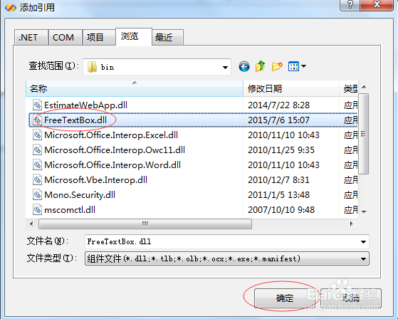 在解決方案那邊右鍵點擊“引用”,彈出引用對話框,點擊“瀏覽”切換到如下圖1,默認就是定位到該項目所在的文件夾,點擊"bin",找到FreeTextBox.dll點擊確定,就完成了該引用的添加了,后續(xù)代碼中你就可以正常使用該dll了。