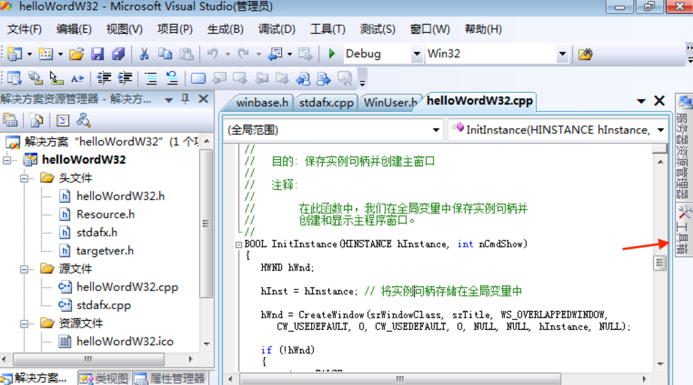 打開Visual Studio的工程,如果工程右側(cè)有工具箱的按鈕,那么直接點擊