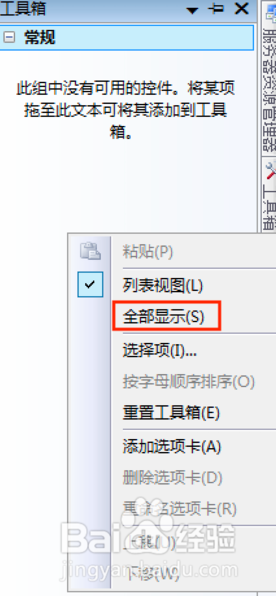 點擊工具箱的空白處,右鍵選擇“全部顯示”