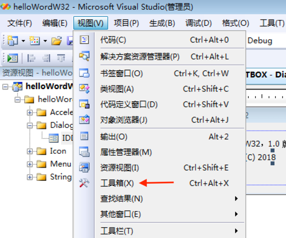 如果工程右側(cè)沒有顯示“工具箱”,那么可以通過菜單“視圖”-》工具箱來打開“工具箱”
