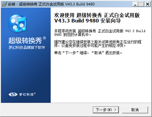 1.首先自該頁(yè)找到下載地址并下載超級(jí)轉(zhuǎn)換秀軟件包,下載后請(qǐng)先將.zip格式文件進(jìn)行解壓找到.exe格式文件雙擊運(yùn)行。運(yùn)行后出現(xiàn)如下界面截圖:在該界面小伙伴只需要直接單擊【下一步】按鈕繼續(xù)安裝即可;