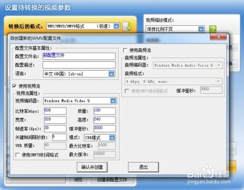 接著進(jìn)入“設(shè)置待轉(zhuǎn)換的視頻參數(shù)”對(duì)話框,在右欄目的“音頻源”處點(diǎn)擊“替換”按鈕,即可為視頻替換成你喜歡的音樂(lè)。關(guān)于消音:請(qǐng)?jiān)凇稗D(zhuǎn)換后的格式”的下拉框中選擇導(dǎo)出WMV格式,然后點(diǎn)擊“創(chuàng)建自配置文件”按鈕,在彈出框中,將“使用音頻流”處的勾去掉即可實(shí)現(xiàn)消音的功能。
