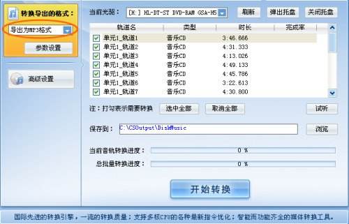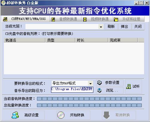 1.支持將CD音樂(lè)直接轉(zhuǎn)換為WAV、MP3、WMA、OGG等數(shù)字音樂(lè)2.支持多光驅(qū)