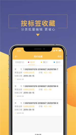 頭號(hào)票據(jù)APP由融易行(天津)網(wǎng)絡(luò)科技有限公司開發(fā),是一款專業(yè)的計(jì)算工具,致力于幫助用戶解決在貼現(xiàn)方面遇到的計(jì)算問題。軟件為了滿足不同用戶的計(jì)算需求特地提供按利率計(jì)算和按每十萬扣費(fèi)計(jì)算兩種計(jì)算方式,讓用戶在計(jì)算時(shí)可以根據(jù)自己的實(shí)際情況進(jìn)行選擇,不用擔(dān)心找不到合適的計(jì)算方式。軟件提供智能計(jì)算功能,系統(tǒng)會(huì)根據(jù)用戶選擇的計(jì)算方式對(duì)金額進(jìn)行計(jì)算并按照時(shí)間的變化而更新,功能在用戶將計(jì)算項(xiàng)目收藏時(shí)自動(dòng)開啟。軟件提供標(biāo)簽功能,用戶可以將收藏的計(jì)算項(xiàng)目進(jìn)行標(biāo)簽劃分,將項(xiàng)目按照金額或時(shí)間的不同進(jìn)行分類,具體分類原因由用戶自己選擇,這樣在查看計(jì)算項(xiàng)目時(shí)才能分清輕重緩急。