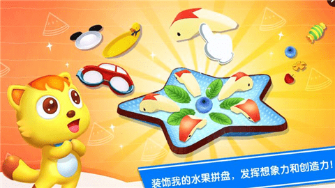 水果拼盤貓小帥是一款幫助孩子學(xué)會(huì)制作水果拼盤的早教軟件,本款軟件適合4-8歲的兒童使用。我們可以讓孩子在軟件里發(fā)揮自己的創(chuàng)造能力,利用不同的水果食材來制作拼盤,非常有意思。