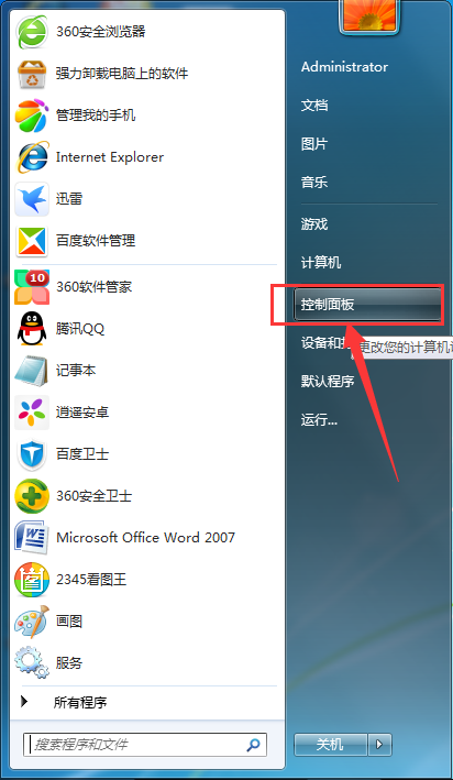 1、先在電腦左下角的“開始”中打開“控制面板”;