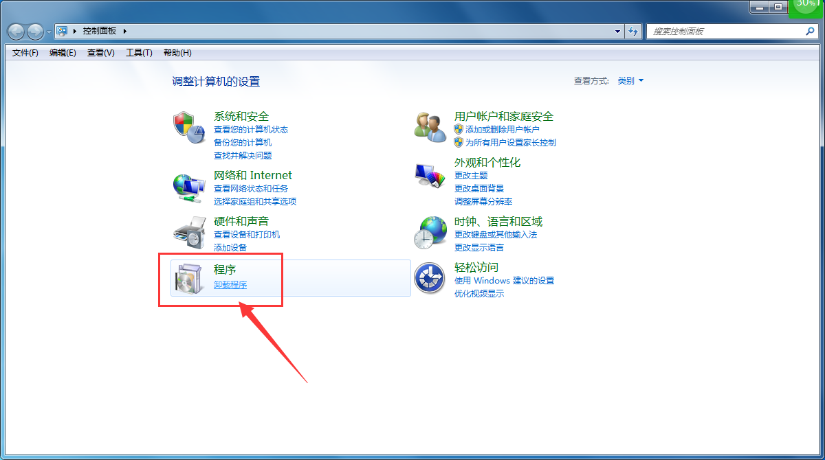 2、然后在“控制面板”中打開“卸載程序”;