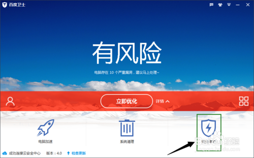 5、安裝結束后,會自動打開百度衛(wèi)士,這樣就表示安裝完成了,快來使用吧。