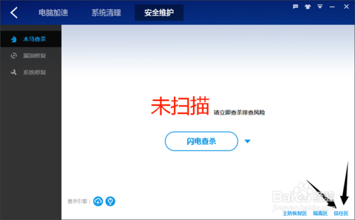 進入安全維護的界面以后,在木馬查殺這一項下面就可以看到信任區(qū)。