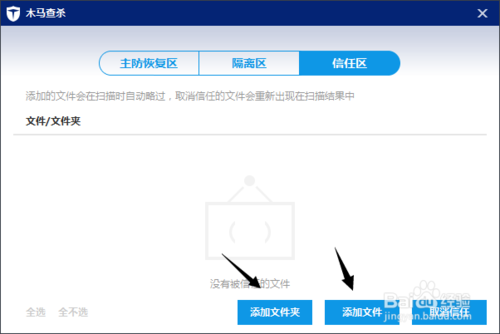 可以設置單個文件或是文件夾作為信任文件。如下圖所示就它的添加的按鈕。在這里進入就可以了。