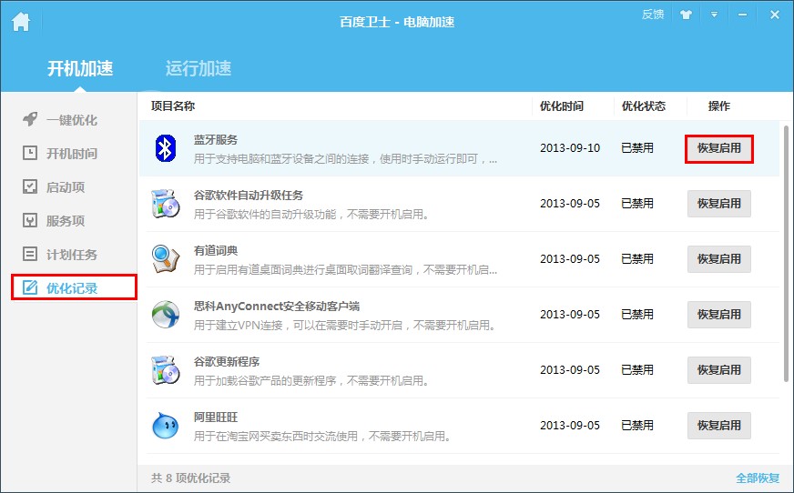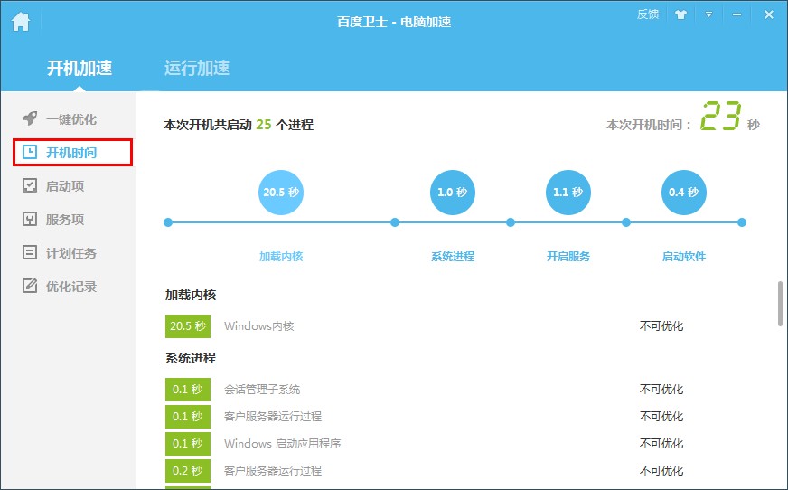 1、一鍵優(yōu)化:對電腦進行全面優(yōu)化,保證其快速恢復“健康”狀態(tài)2、電腦加速:加快電腦開機和運行速度