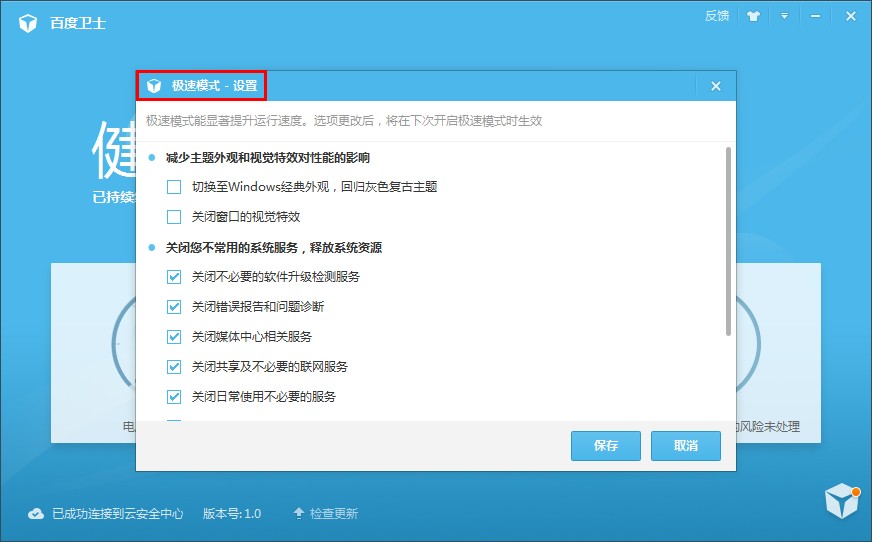自保護功能是對百度衛(wèi)士軟件自身運行的保護措施,防止惡意軟件妨礙百度衛(wèi)士的運行。關閉自保護后,百度衛(wèi)士的運行可能遭到惡意軟件的妨礙,導致您的系統(tǒng)有面臨風險。您可以在“設置中心”開啟或臨時關閉自保護功能。