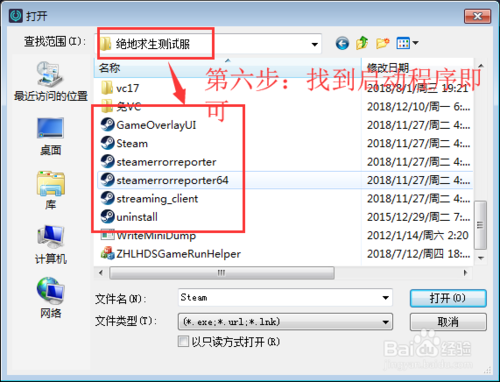 加速器吃雞路徑設(shè)置步驟六:點(diǎn)擊瀏覽選項(xiàng)以后,在文件管理器中找到并且雙擊吃雞游戲的啟動(dòng)程序即可。