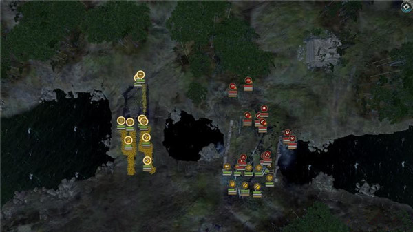 下圖是一張典型的防守地形,近戰(zhàn)士兵堵住兩個出口,但是地方軍隊全部從右邊進攻,那么可以操控左邊的友軍對地方后部進行包圍突擊,這樣會加大優(yōu)勢有時能夠反敗為勝。