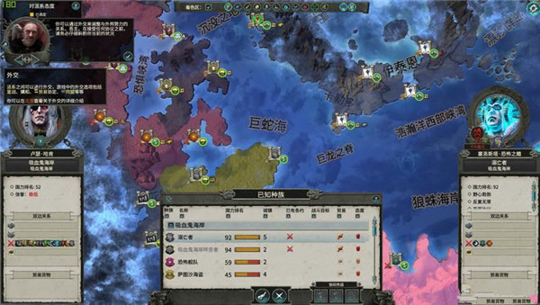 點擊右下角的外交圖標可以與其他派系進行外交、查看兩個的關系。