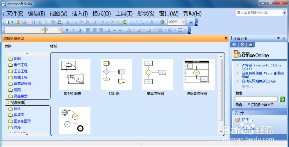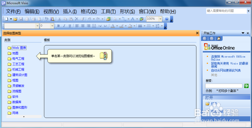 首先,我們打開visio軟件,默認(rèn)打開時(shí),就會(huì)提示你選擇繪制的類型。