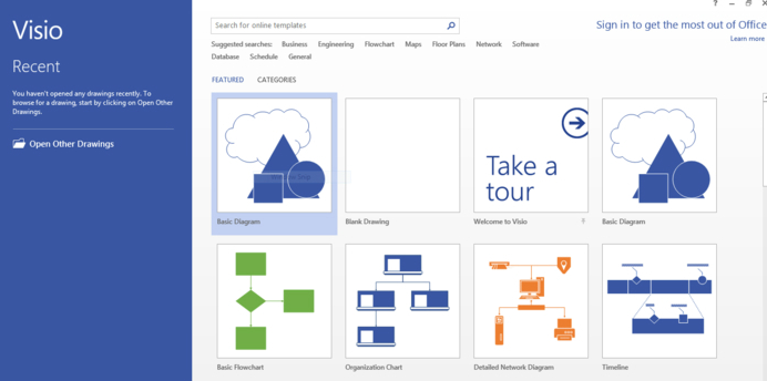 1、啟動(dòng)VisioVisio將打開起始頁(yè),您可以在其中查找許多圖表類型的模板。