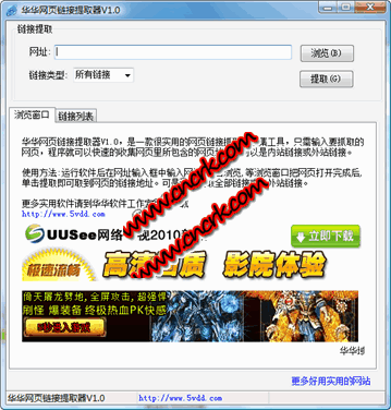 華華網(wǎng)頁鏈接提取器 V1.0 綠色免費版 華華網(wǎng)頁鏈接提取器是一款很實用的網(wǎng)頁鏈接抓取、收集工具,只需輸入要抓取的網(wǎng)頁,程序就可以快速的收集網(wǎng)頁里所包含的網(wǎng)頁地址??梢允莾?nèi)站鏈接或外站鏈接。
