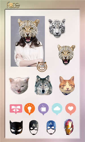 1、我們提供了10余種動物臉供你選擇,包括老虎、獅子、猩猩、貓、貓頭鷹等,并將持續(xù)更新。2、提供4種換臉方式,你可以選擇將臉的上半部分、下半部分、左半部分和右半部分,換成動物的臉,形成多種奇異的效果。