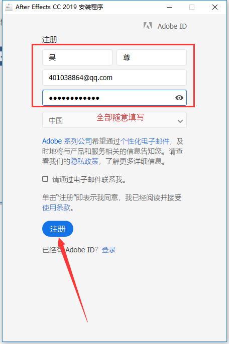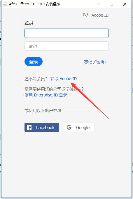 出現(xiàn)登錄選框的時候,點(diǎn)擊下方箭頭所指的獲取AdobeID。(如果你安裝沒有出現(xiàn)這個,可以直接進(jìn)行下一步)如圖三。