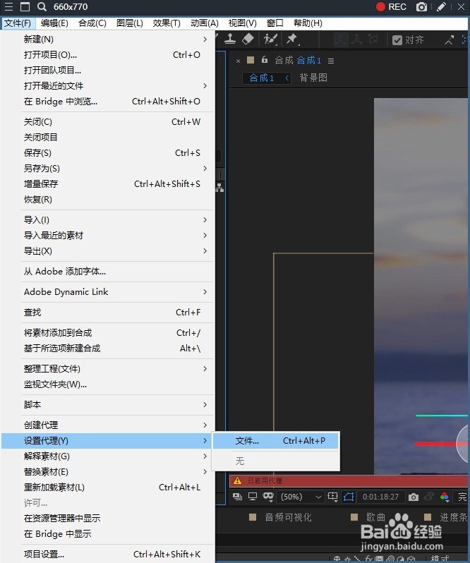 設(shè)置合成圖像解析度為Custom Ctrl+ Alt+J