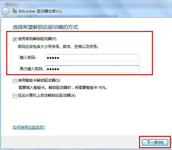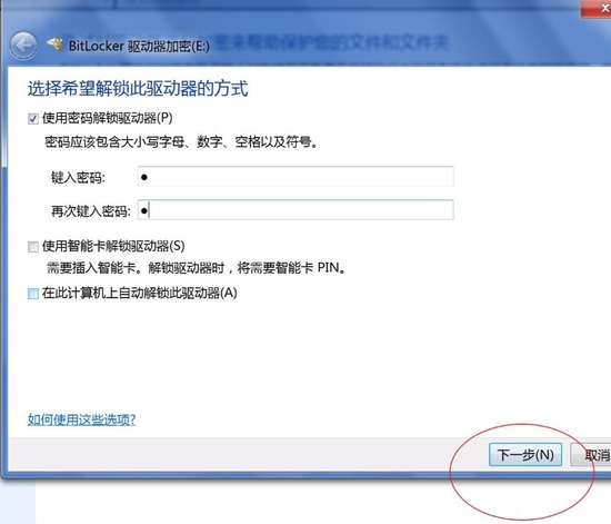 根據(jù)提示,一步一步進(jìn)行加密設(shè)置,一般來說選擇使用密碼加密即可,但是特別需要注重的是需要把恢復(fù)密碼保存到非加密的分區(qū)文件中,而且不能保存在根目錄下。而且一定要記住保存位置,勞記密碼。