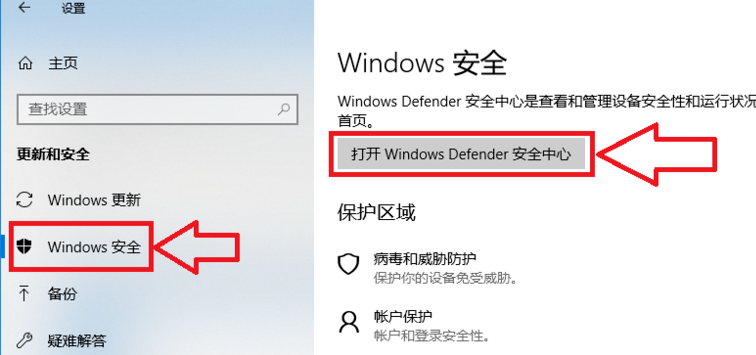 首先打開左側(cè)的Windows安全選項(xiàng),然后再選擇打開右側(cè)里的<打開Windows