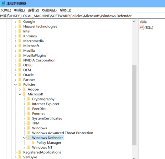 HKEY_LOCAL_MACHINE \ SOFTWARE \ Policies \ Microsoft \ Windows Defender。