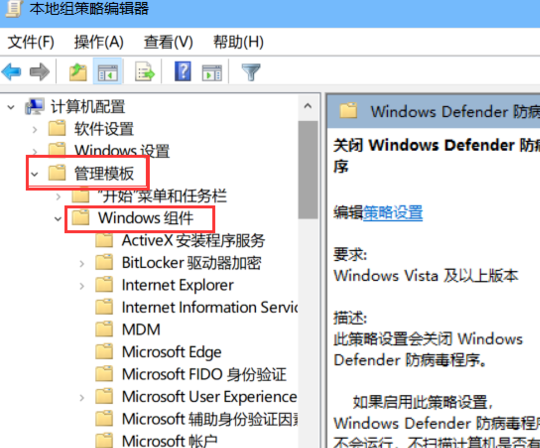 管理模板-windows組件-windows defender防病毒程序,