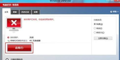 在右側(cè)選擇關(guān)閉windows defender防病毒程序,打開 選擇 啟用,確定!
