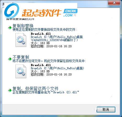 2、將破解補(bǔ)丁DrawLib.dll文件移動(dòng)覆2019蓋到源程序文件C:\Program Files\CAXA\CAXA CAD\2019中進(jìn)行替換文件DrawLib.dll,即可完成破解