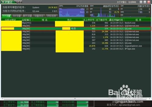 5、顯示訪問過的網(wǎng)站以及聊天軟件的IP地址,地理位置,該IP發(fā)送/接收字節(jié)數(shù),時間,訪問進(jìn)程, 讓網(wǎng)絡(luò)從此清晰。