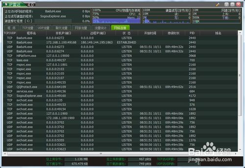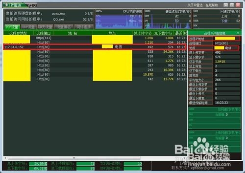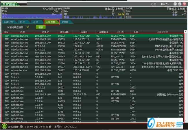 這里顯示了網(wǎng)絡(luò)連接的程序名稱、IP地址和端口,以及對方的IP地址和端口等訊息,很實(shí)用。